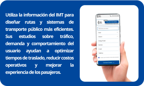 El IMT ofrece servicios a gobiernos, empresas privadas, instituciones académicas y público en general, proporcionando estudios, análisis y asesoría especializada en transporte.